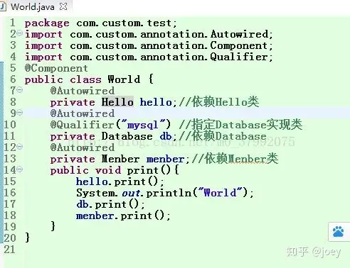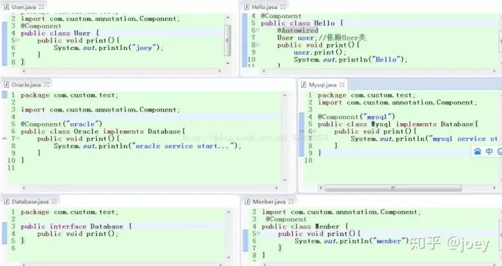 当然Annotation 自动装配也不是特别完美的,就比如我们要自动装配一个类的话 必须为其设置 @Component ,比如我们要实例一些第三方jar包中的类,我们总不可能让第三方为我们加上@Component吧,当然 这是不现实的,不过如果你面子够大的话还是可以试一下的哈!所以在我们的实际开发中结合Annotation和xml使用才是最佳王道、当然,前者是基于普通是ssm项目、如果是基于springboot来的话 我们要配合javaConfig配置模式