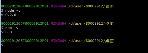 - 安装node.js(要求版本:node>=6,npm>=5.2),直接去node官网下载安装包即可,安装完成以后可以打开cmd/git,通过node -v/npm -v 查看版本。
