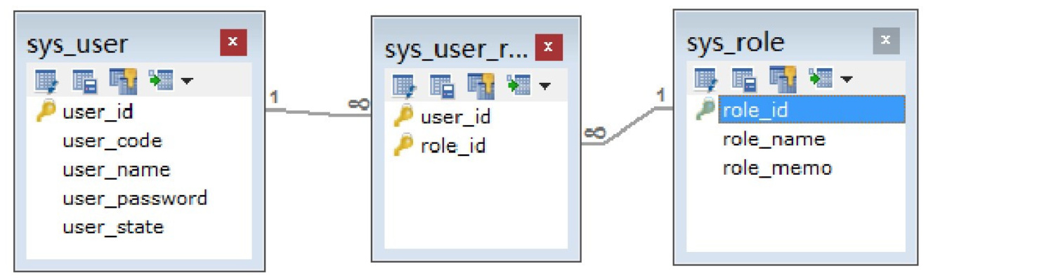 用工具创建Sys_role映射表,需要对多对多的地方进行修改成如下的代码