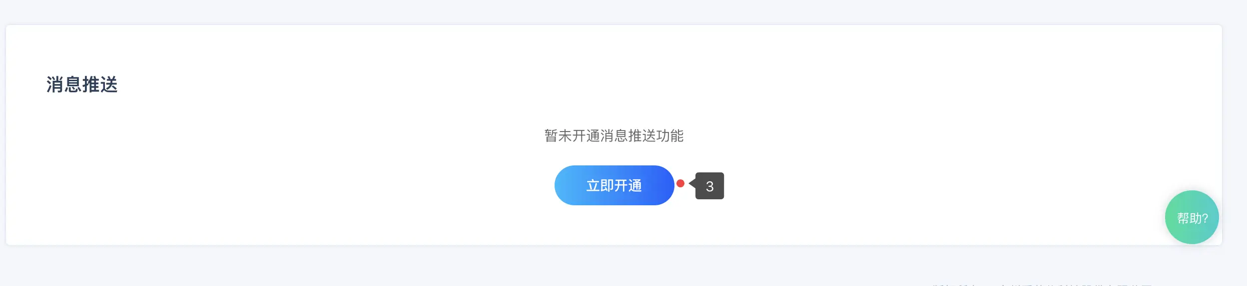 知晓云控制台 -> 设置 -> 小程序,拉到最底找到「消息推送」,点击 立即开通,即可开通消息推送功能: