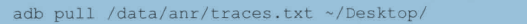 从Logcat 的日志信息我们可以知道引发ANR的具体的类信息,以及ANR的类型,但是这不足够开发者定位到具体引发问题的代码行,为了获得进一步的信息,我们需要借助于ANR过程中生成的堆栈信息文件/data/anr/traces.txt ,这个文件可以通过终端Termianl中执行adb pull命令从手机的内部存储中拷贝到电脑中,也可以通过如下语句拷贝到MacBook Pro的桌面上