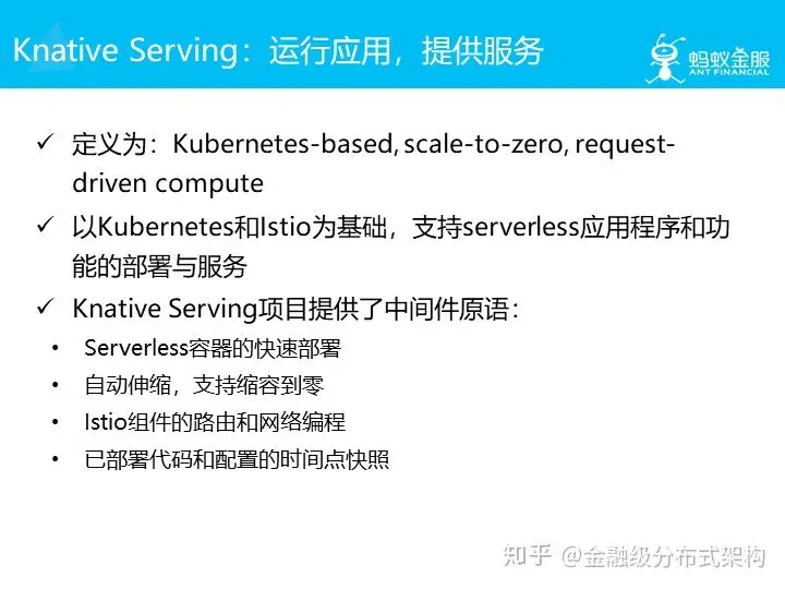 - 如果本来就有规划使用 Istio/Service mesh ,比如像我们蚂蚁这种,那么 Knative 对 Istio 的依赖就不是问题了,反而可以组合使用。