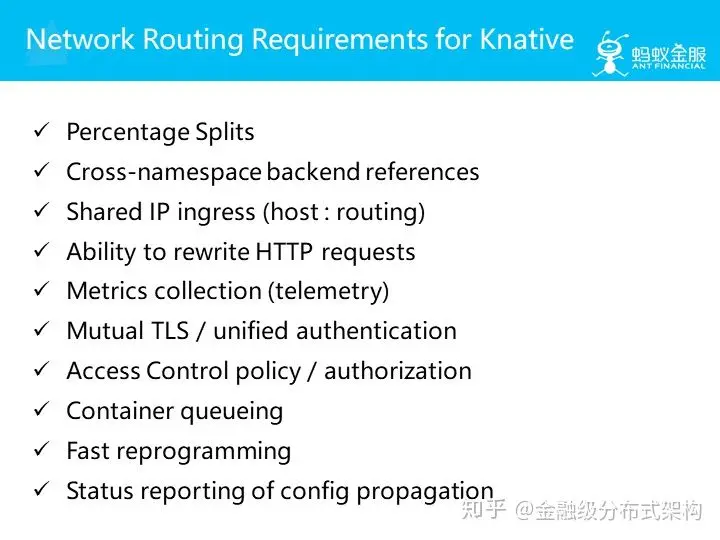 在网络路由能力方面也有很多欠缺,上面是 Knative 在文档中列出来的需求列表。