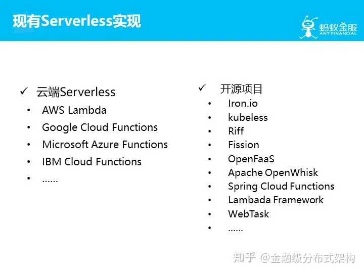 我们来看一下,在Knative出来前, Serverless 领域已有的实现,包括云端提供的产品和各种开源项目。
