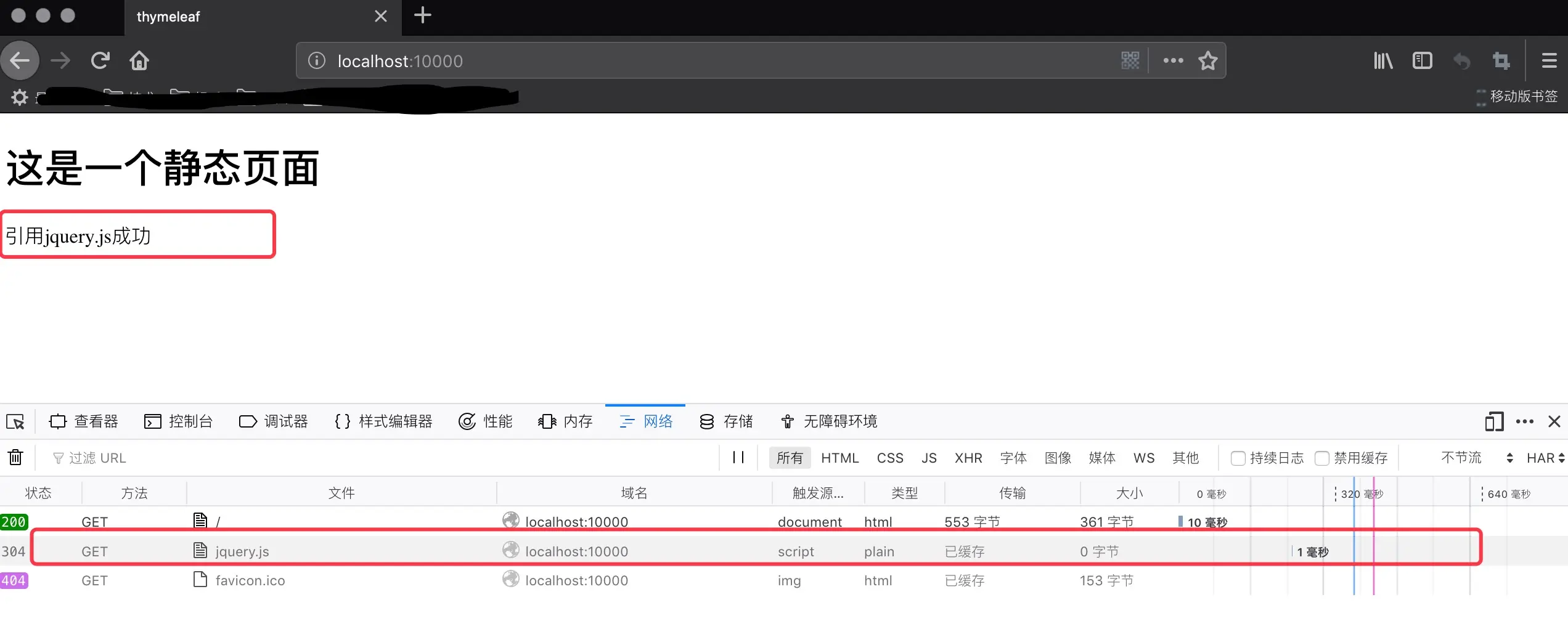 通过图中红框内容都可以看出来引用静态资源成功了。