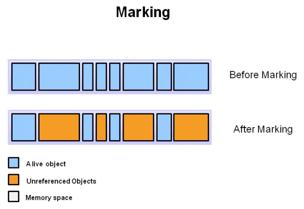 标记哪些对象是被使用的,哪些是不再使用的: