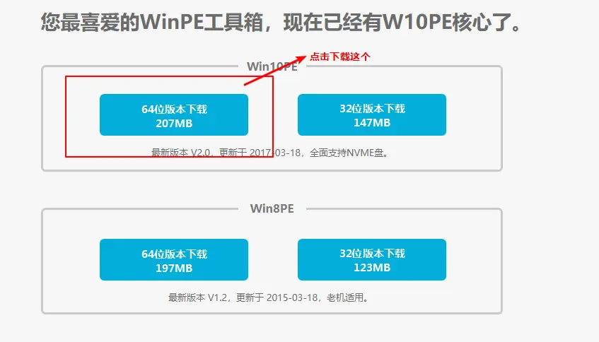 做U盘启动工具的话有很多种方法,比如微PE,u启动,大白菜,老毛桃都可以,这里推荐使用微PE。访问http://www.wepe.com.cn/download.html这个链接就可以进入官网,如下页面。