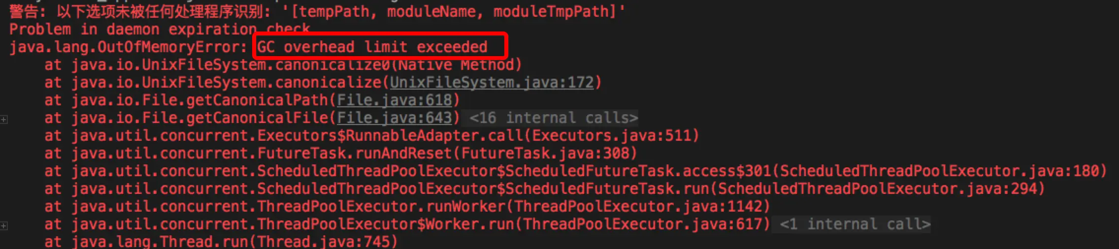 是项目运行的时候JVM的内存不够用了,手动设置一下顺利解决