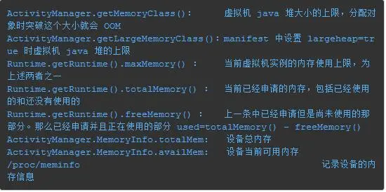 下面是几个关于 Android 官方声明内存限制阈值的 API: