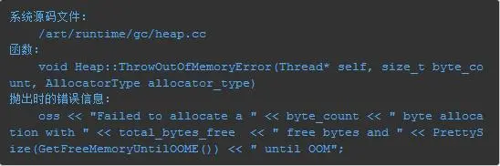 Android 系统中,OutOfMemoryError 这个错误是怎么被系统抛出的?下面基于 Android6.0 的代码进行简单分析: