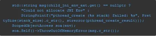 1. Android 虚拟机最终抛出OutOfMemoryError 的代码位于/art/runtime/thread.cc