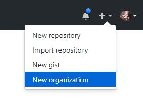 下一步,在github上创建组(organization),可以在页面的右上角看见下图的内容