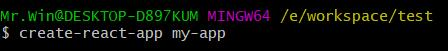 之后在gitbash中进入到该文件,并使用 create-react-app 构建我们的代码。