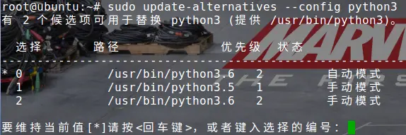 sudo update-alternatives --install /usr/bin/python3 python3 /usr/bin/python3.6 2