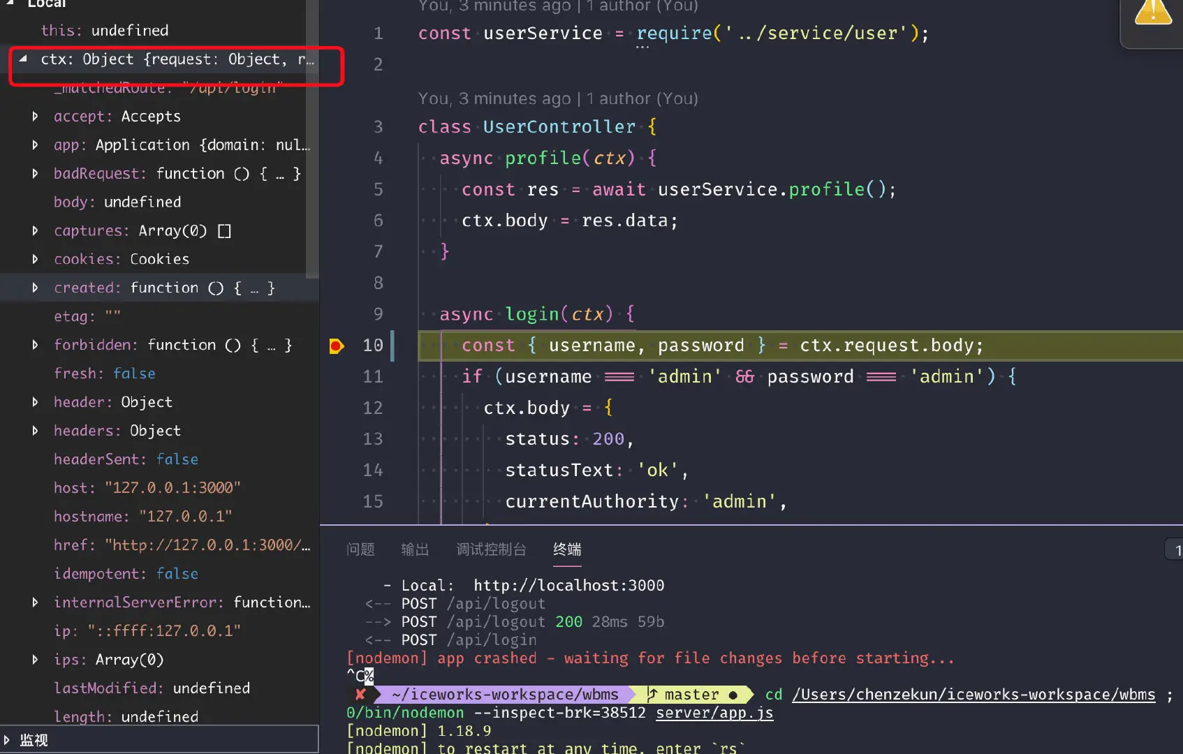 我们还想要自动重启的功能,安装 nodemon 或者 node-dev: