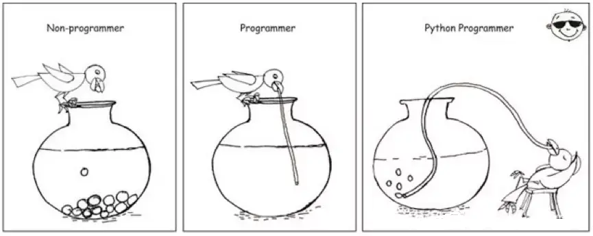 如果你仍然不确定学习Python,那么看看这个图像,它正确地展示了Python开发人员的生活: