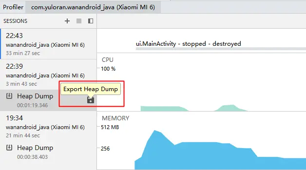 将应用 Java 堆内存导出为 *.hprof(heap profile):