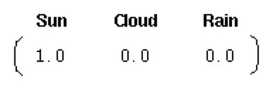 - 状态转移矩阵:给定前一天天气情况下的当前天气概率。