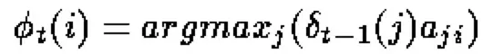 计算t时刻的's我们仅仅需要知道t-1时刻的's。在这个局部概率计算之后,就有可能记录前一时刻哪个状态生成了(i,t)——也就是说,在t-1时刻系统必须处于某个状态,该状态导致了系统在t时刻到达状态i是最优的。这种记录(记忆)是通过对每一个状态赋予一个反向指针完成的,这个指针指向最优的引发当前状态的前一时刻的某个状态。