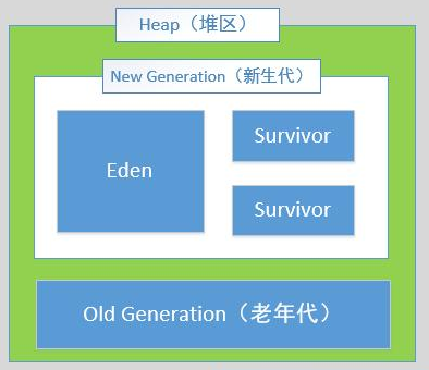 当堆中没有足够内存时,会抛出OutOfMemoryError异常。关于堆区的内存模型,可以参考下面的图片: