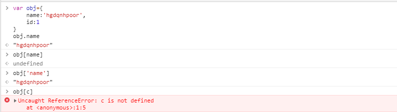 - 获取对象(对象里面没有这个属性名)的属性名对应的属性值,如果没有(属性名)的话,默认返回的是undefined;数组同样适用,获取属性名对应的属性值,如果没属性名,默认是undefined;字符串通过索引获取一个不存在的字符,返回undefined