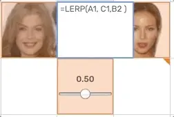 顶部操作栏中的LERP按钮使可以在电子表格中的选定单元格之间进行线性插值。