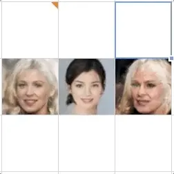 以上表格图像中,左上、右上、左下三张人脸图像都是从左侧数据库中选取,在选中它们后选择“LERP”,就可以得出右下角人脸图像。这张图是根据前3张图推理得出的。