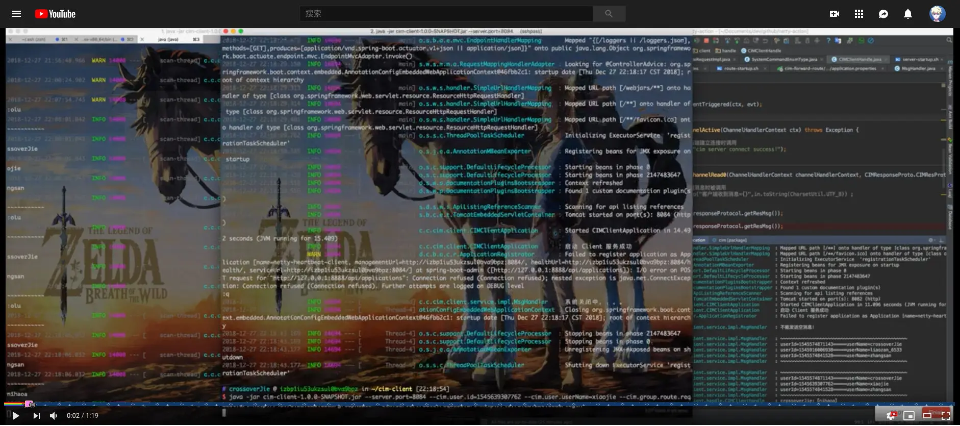 cim-forward-route,这是路由服务器,所有的消息都需要经过它。由于它是无状态的,所以也可以利用Nginx代理提高可用性。 cim-client真正面向用户的客户端;启动之后会自动连接 IM 服务器便可以在控制台收发消息了。