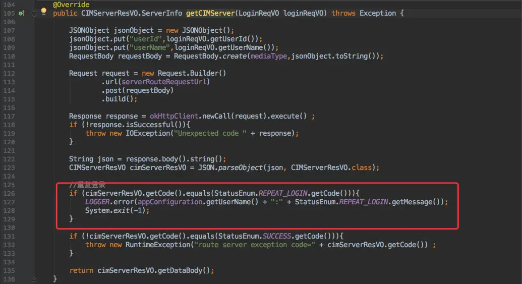 登录过程中 route 接口会判断是否为重复登录,重复登录则会直接退出程序。