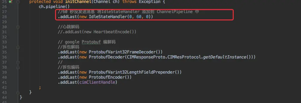 从 pipline 中可以看出使用了 Protobuf 的编解码(具体报文在客户端中分析)。
