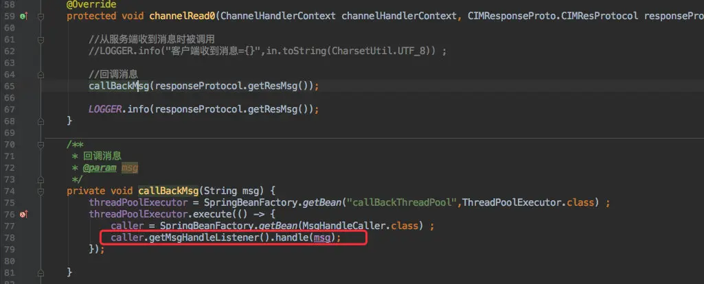 所以在客户端收到消息之后会回调一个接口,在这个接口中可以自定义实现。