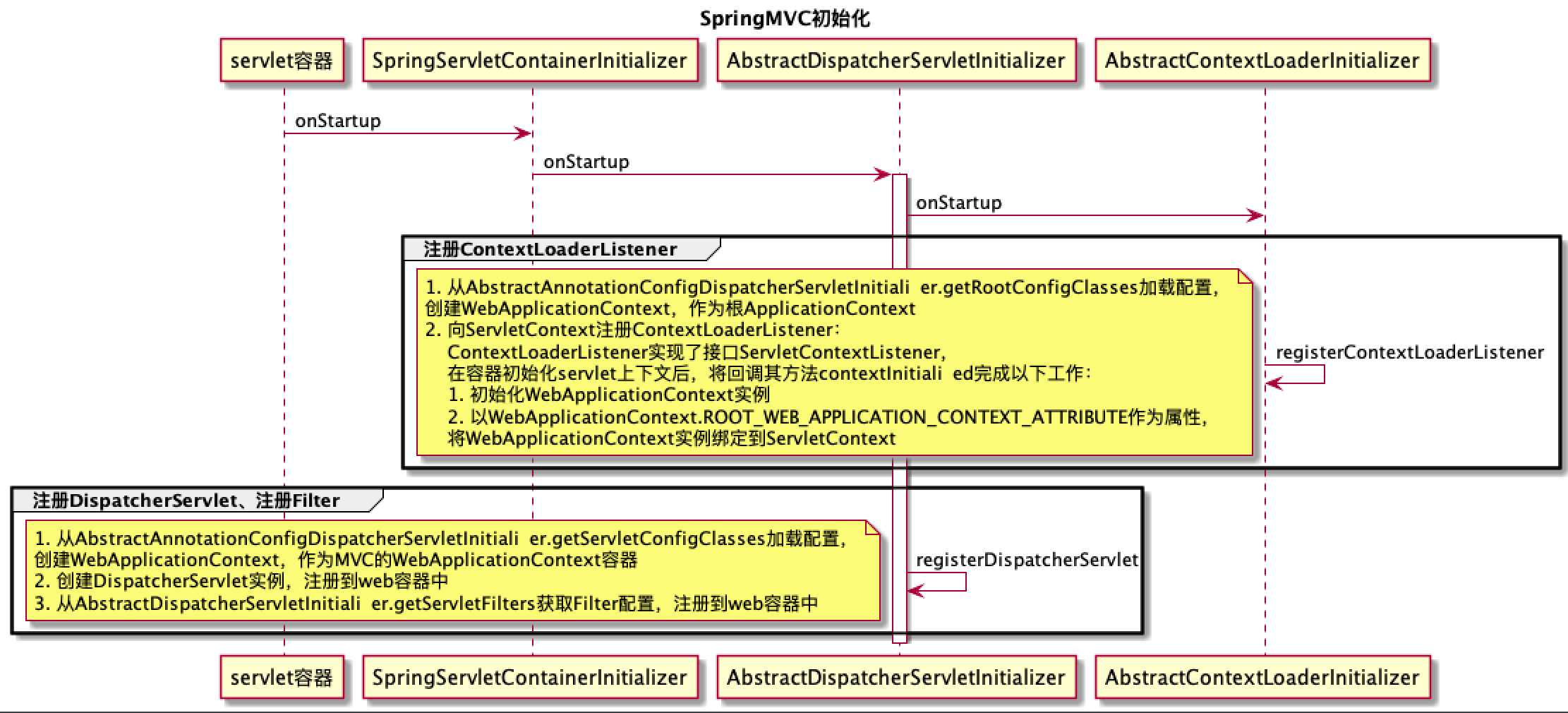 - 第二步,servlet容器启动后,调用ContextLoaderListener#contextInitialized初始化必要的bean(如DAO、service相关的bean)