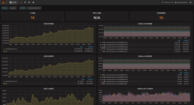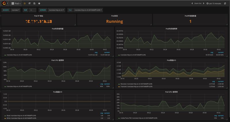 360 容器平台监控系统的数据面板使用的是 Grafana,并对其增加了 LDAP 用户认证。可以显示内存,访问量,SIO, GPU 等监控数据指标。