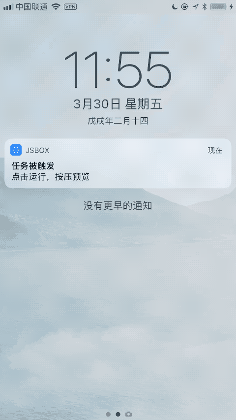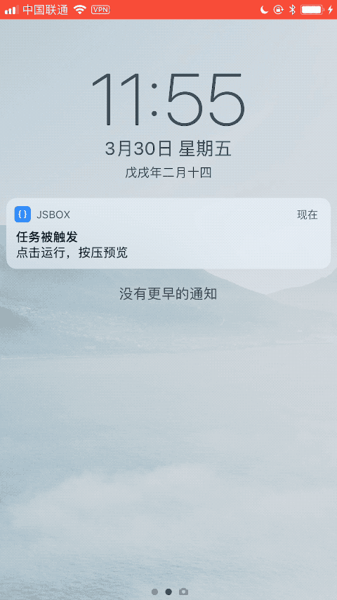 UNLocationNotificationTrigger可以通过判断用户进入某一区域,离开某一区域时触发通知,但是我去看了一下设置里面的权限,发现只使用这个功能的时候JSBox并没有请求定位的权限,所以应该不是根据地点触发的。