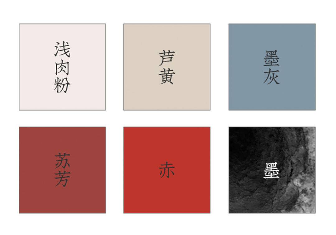 色彩优先选用了低饱和度的传统色,浅色和墨色为主,红色做为点缀。