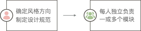 主视觉确定风格并制定设计规范,其他设计师独立负责1个或多个模块。这样的方式在实践中也暴露了缺点:
