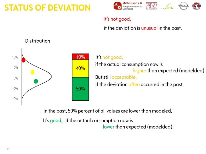 如果想要知道今年上半年的能源使用效率,将今年的数据代入模型,就可以得到使用的参考值,以及和实际值的偏差。这个偏差在分布中的位置,就说明了当前能源消耗的效率。