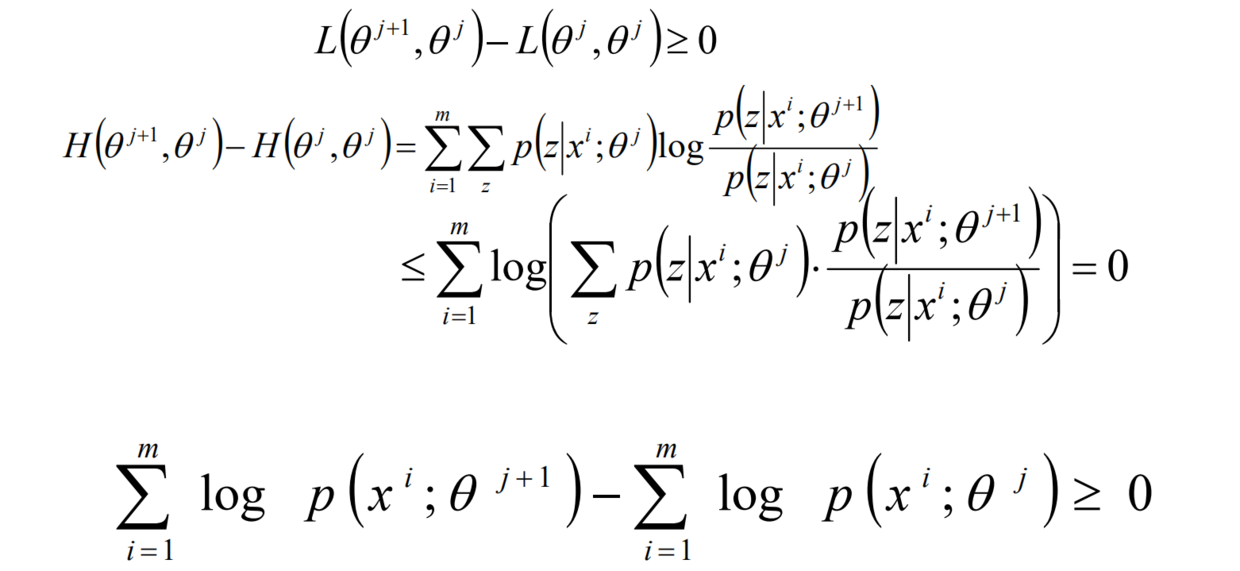 EM算法的收敛性只要我们能够证明对数似然函数的值在迭代的过程中是增加的即可。