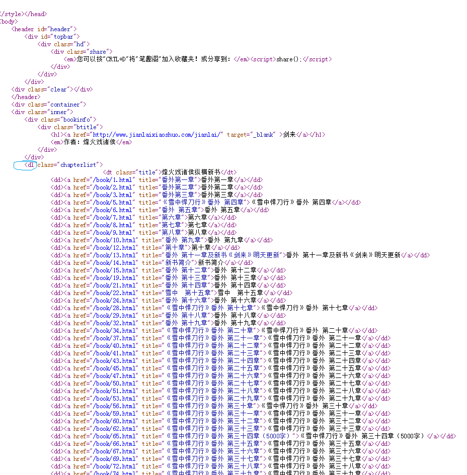 website='http://www.jianlaixiaoshuo.com/' #保存该网页的url
