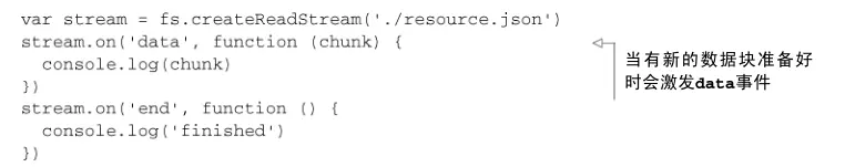 只要有新的数据块准备好,就会激发 data 事件,当所有数据块都加载完之后,会激发一个 end 事件。