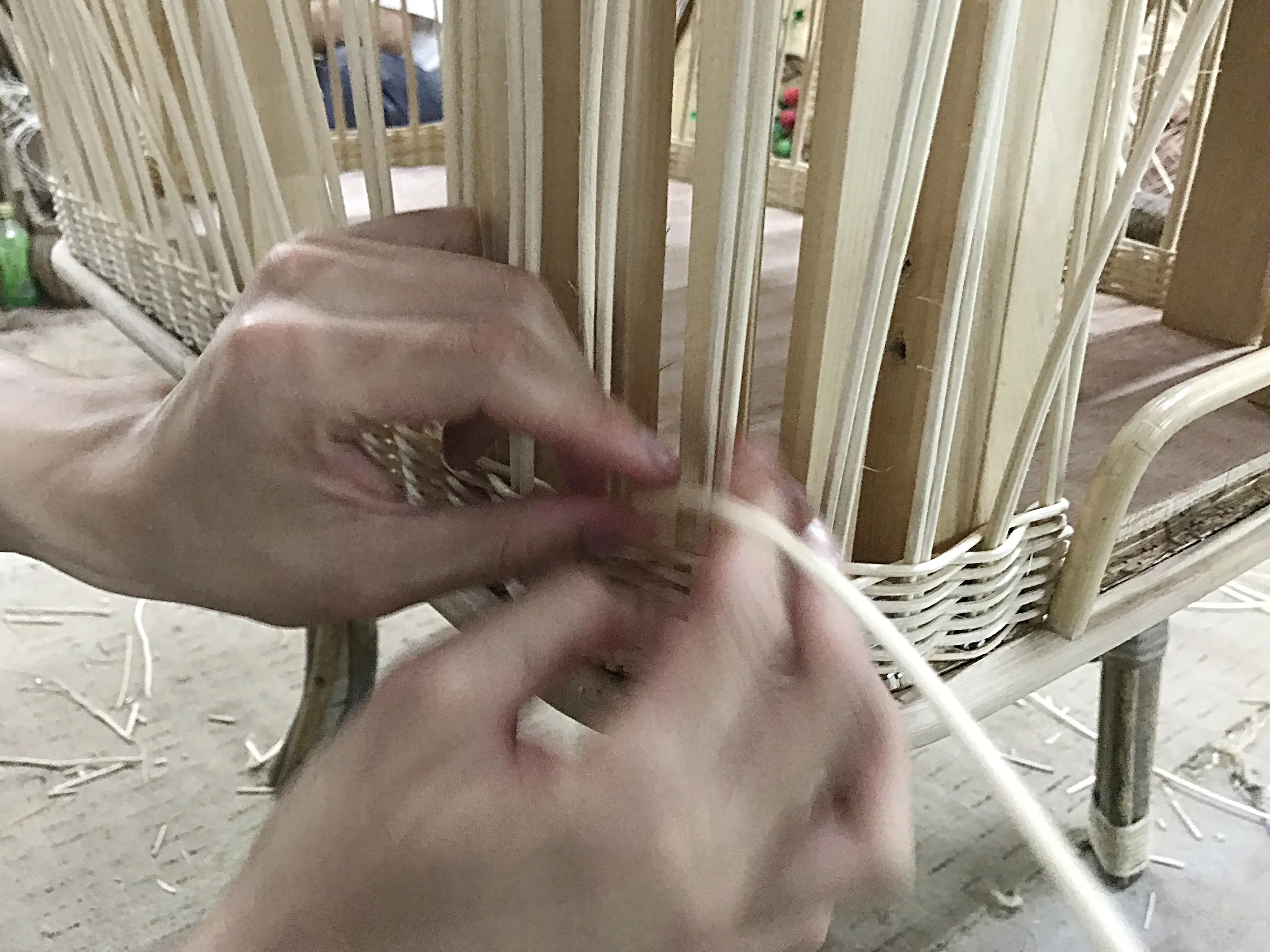 陈子迪:大四时候我有一个课程——产品设计三,这个课程是以藤为基础材料做设计创新,从那时我就开始关注南海藤编。藤从一开始作为编织篮子的材料到制作手提箱,最后应用于现代家具,至今一千多年历史。藤的特点是韧性好而且非常耐用,好的藤制品可以用上百年。一般用于制作“藤制家具”的藤都是从印尼和马来西亚进口的统称“印尼藤”,棕榈藤是最为常用的藤材,它会被加工成藤条、藤芯、藤皮然后作为编织的材料。需要经历打藤、拣藤、洗藤、晒藤、拗藤、拉藤、削藤、漂白工序之后才能进行编织,编织成成品之后需要用火枪把藤上面的毛刺去除,最后必须上三次油晾干后才算是成品。麻花编织工艺可以很美观地隐藏钉眼,我觉得它是南海藤编工艺中神奇的编织手法。