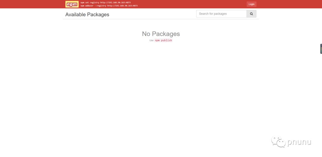 [root@localhost sinopia]# npm adduser --registry http://192.168.50.163:4873 Username: ipnunu Password: Email: (this IS public) ipnunu@qq.com Logged in as ipnunu on http://192.168.50.163:4873/. -