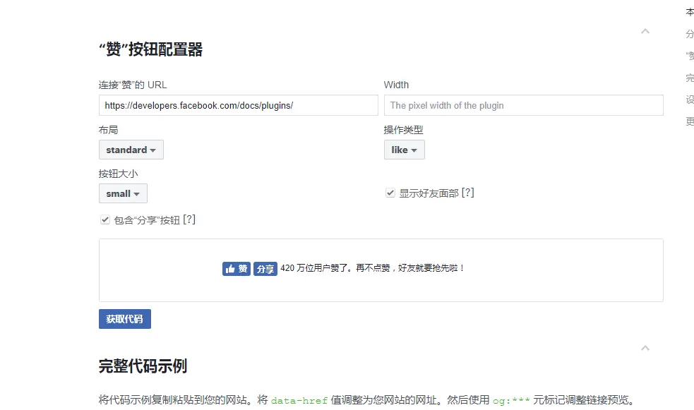 2、在HTML页面中引进js代码(注意:如果你前面已经引进上述的Facebook的SDK到页面中,下面的js可以不用再次引用) 其中,data-href为点赞的页面。