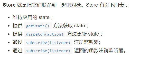 createStore创建的对象拥有4个API,他们分管不同的职能。