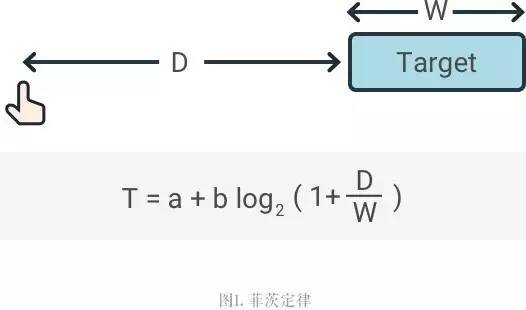 在人机工程领域,有一个非常有名的概念叫费茨定律(Fitt’s Law),它的核心是数学模型:移动到目标区域所需要的时间是目标区域的距离和目标区域大小的函数。省略掉公式,简单的说它的结论:目标越大,指向越快。目标越近,指向越快。