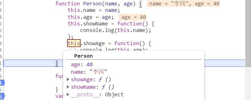 调用var p1=new Person("李四",25)时返回的是如下对象。Person构造函数中的this指的是Person。