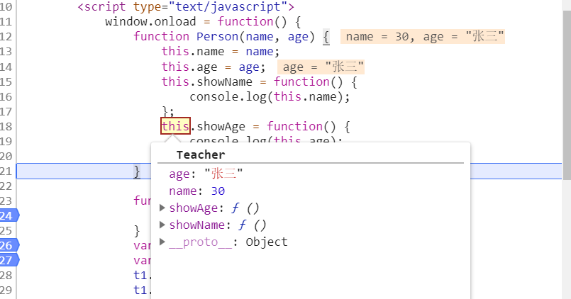 调用var 11=new Teacher("张三",30)时,因为调用了Person.apply(this, [age,name])。Person构造函数中的this指的是Teacher。所有返回的是如下对象。