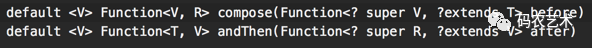 extends T>也说明这一点(范型中extends代表?(wildcard)继承自T,即?的上界(upper bounded)是T),before函数的入参<? super V>,V默认为Object类型(即?的下界(lower bounded)是V),因此入参可以是任意类型。参见范型相关介绍。