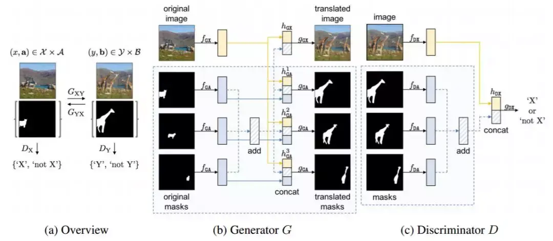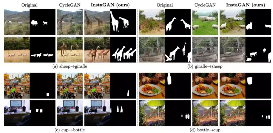 本文作者对多图像实例进行非成对的跨域转换,他们提出了一种方法——InstaGAN。该方法基于 CycleGAN,考虑了以每个实例分割掩码形式存在的实例信息。
