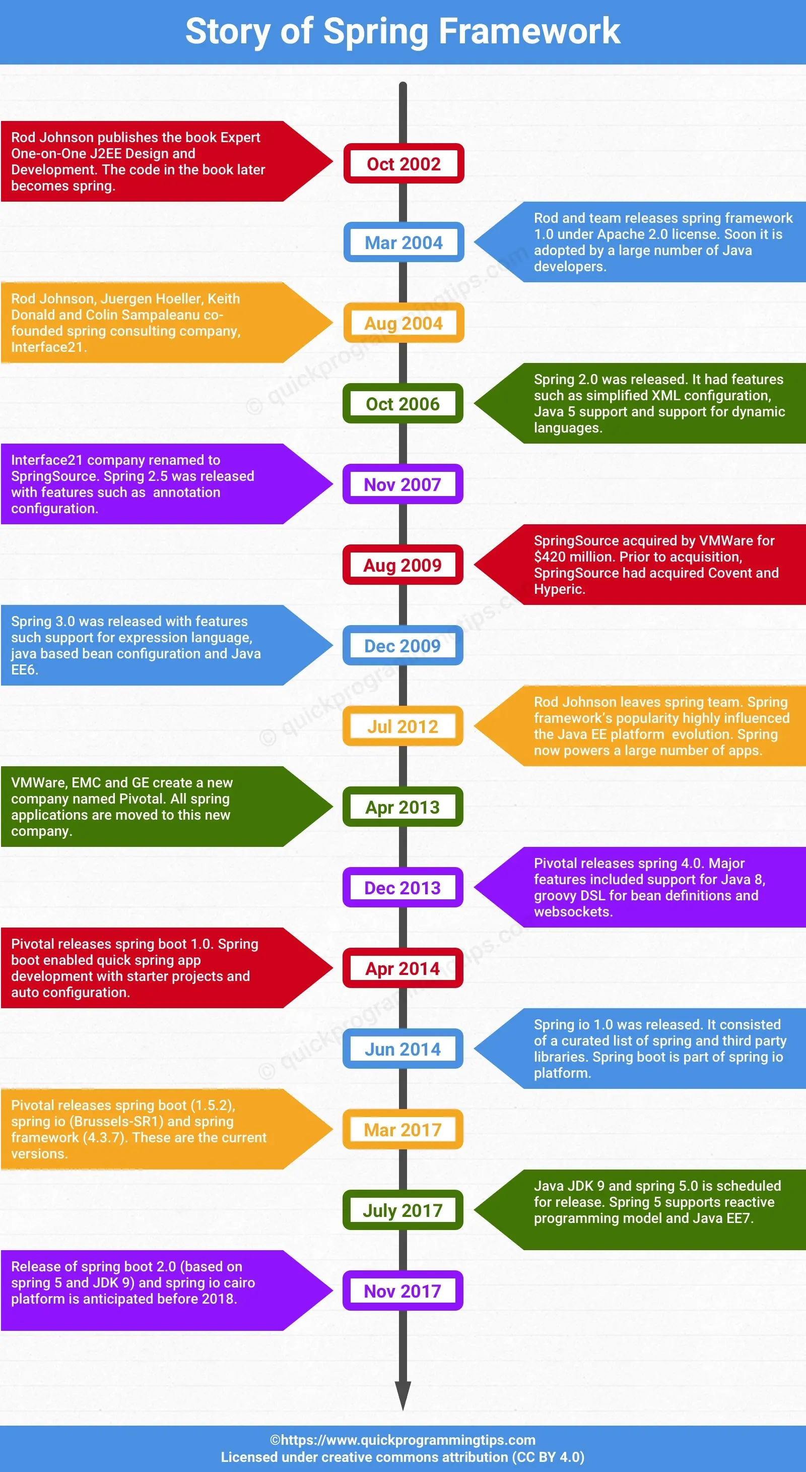 - 2007 年 11 月,更名为 SpringSource,同时发布了 Spring 2.5。